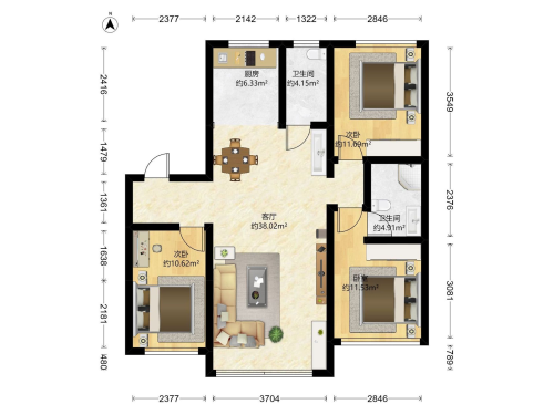 房屋戶型: 3 室2廳 1 廚1衛(wèi)